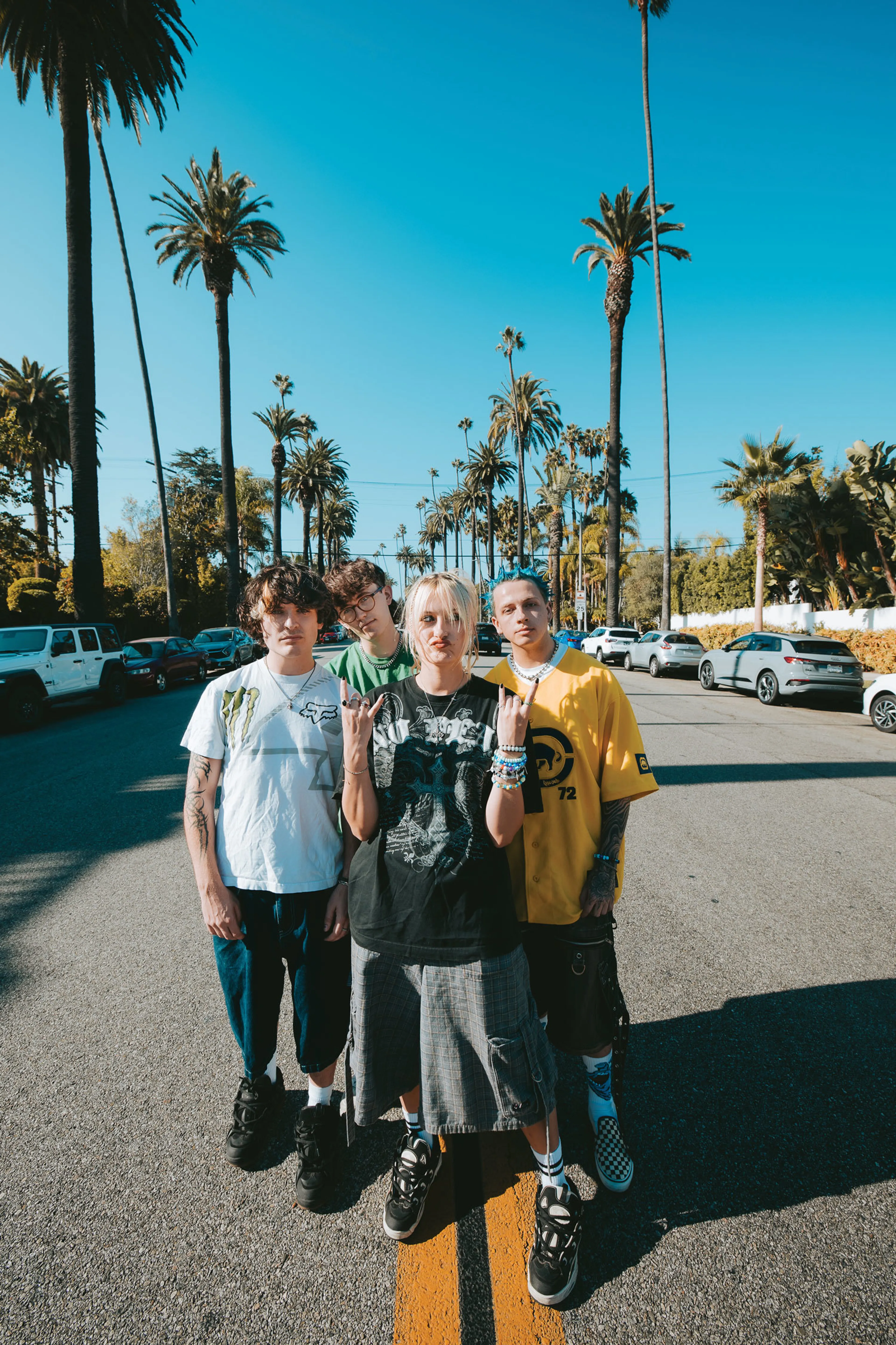 “We actually like writing on tour,” says Harmony of a way of working that’s definitely not for everyone. “We have a vat of songs we could pull from, but we like to be reactive to the music around us and anything that excites us. It also means we can keep an eye on the songs that audiences like and respond to, so we can make sure to make more stuff like that, while keeping it fun.”